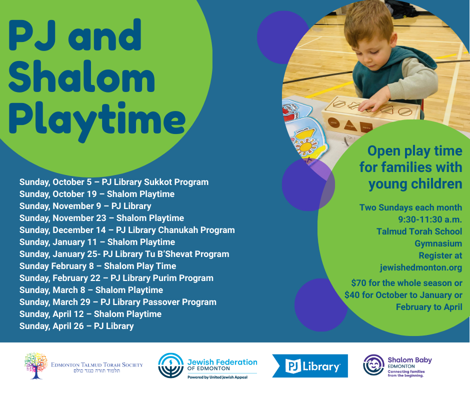 Come play in the Talmud Torah gym and meet up with other Jewish families with young children.  Activities are targeted for children 5 and under with additional PJ library activities once per month.